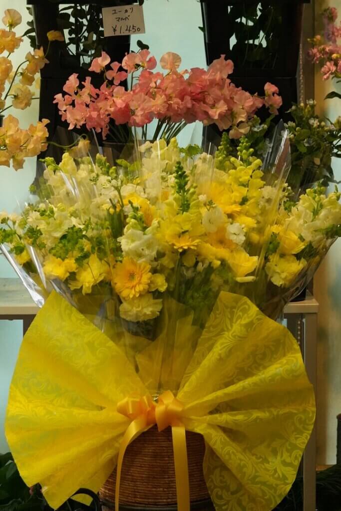 発表会のスタンド花で、1本束のような花束を数束作って、